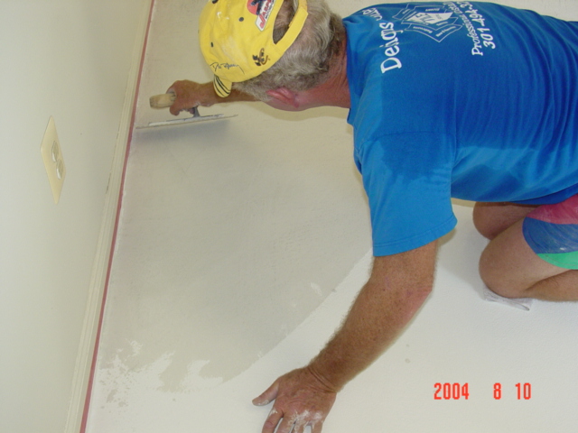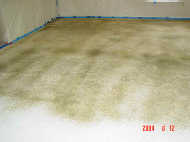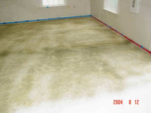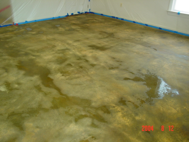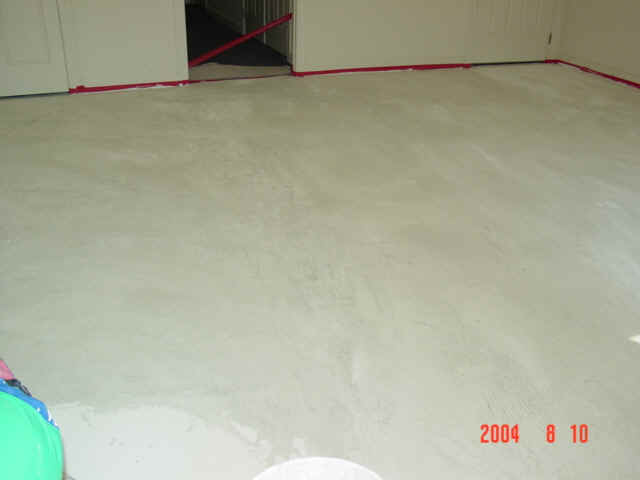 The floor was acid etched and rinsed, then two layers of overlayment and