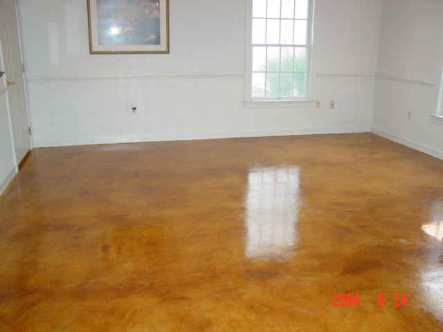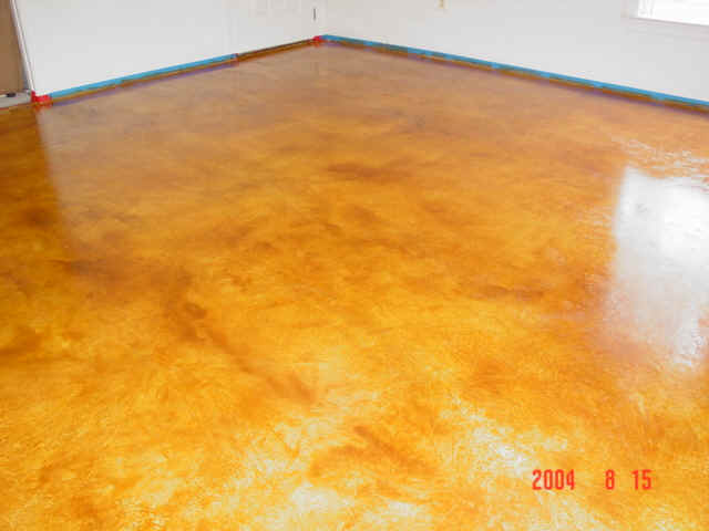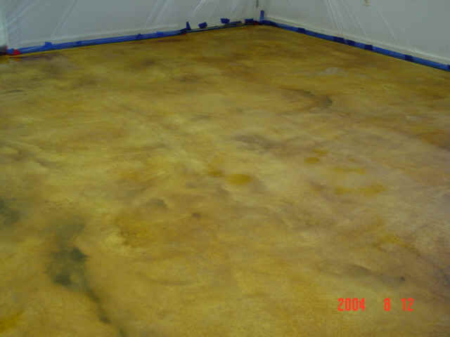 two layers of micro topping were applied to the floor to accept the stain.